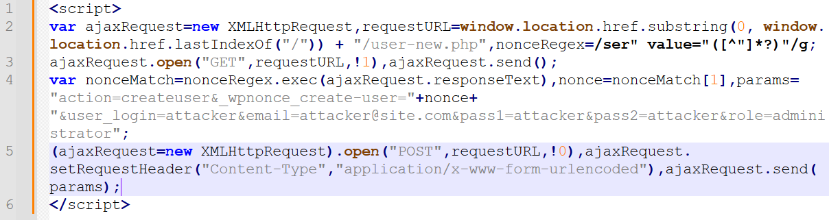 • Extraire le jeton _wpnonce_create-user, nécessaire pour créer un nouvel utilisateur dans WordPress.